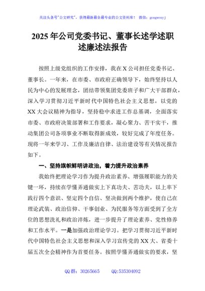 / 2025年公司党委书记、董事长述学述职述廉述法报告