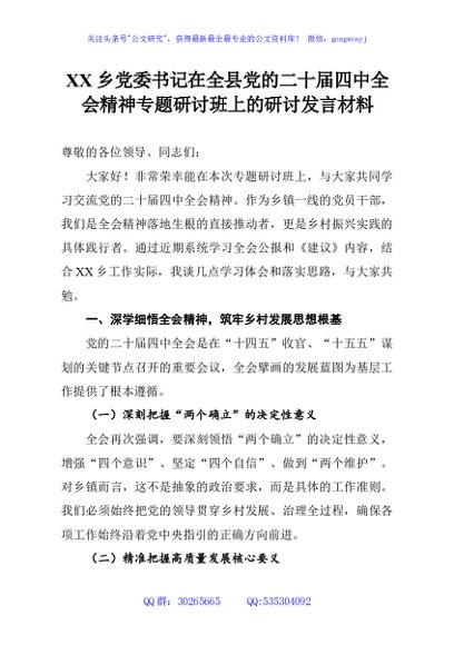 / XX乡党委书记在全县党的二十届四中全会精神专题研讨班上的研讨发言材料