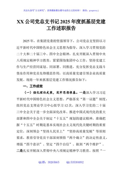 / XX公司党总支书记2025年度抓基层党建工作述职报告