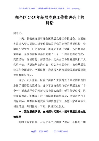 / 在全区2025年基层党建工作推进会上的讲话
