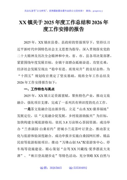 / XX镇关于2025年度工作总结和2026年度工作安排的报告