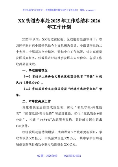 / XX街道办事处2025年工作总结和2026年工作计划