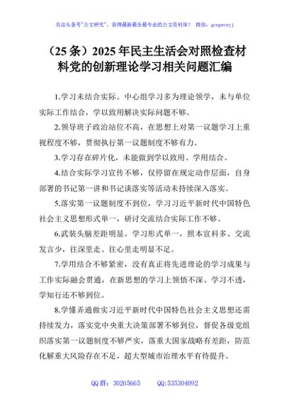 / (25条)2025年民主生活会对照检查材料党的创新理论学习相关问题汇编