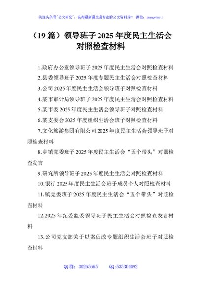 / (19篇)领导班子2025年度民主生活会对照检查材料
