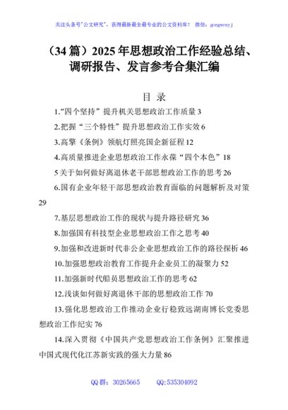 / (34篇)2025年思想政治工作经验总结、调研报告、发言参考合集汇编