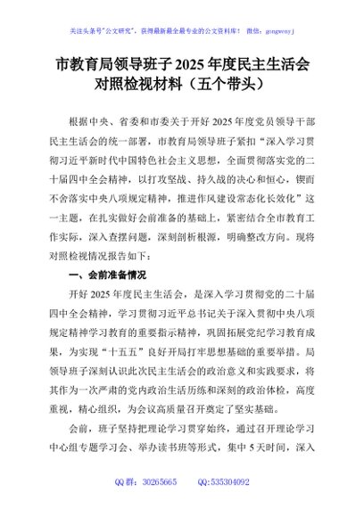 / 市教育局领导班子2025年度民主生活会对照检视材料(五个带头)