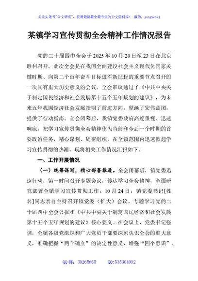 / 某镇学习宣传贯彻全会精神工作情况报告