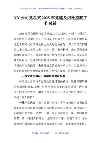 / XX公司党总支2025年党建及纪检监察工作总结
