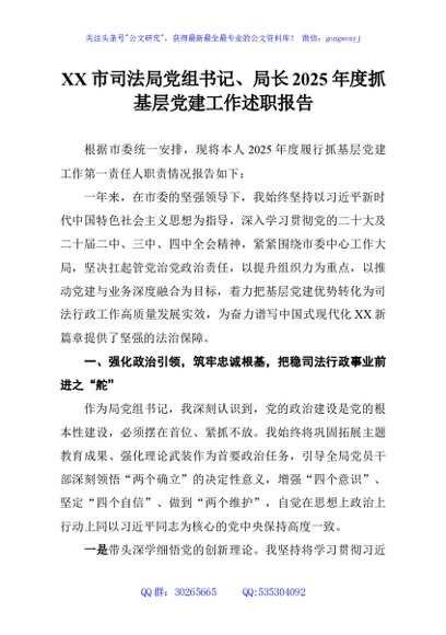 / XX市司法局党组书记、局长2025年度抓基层党建工作述职报告