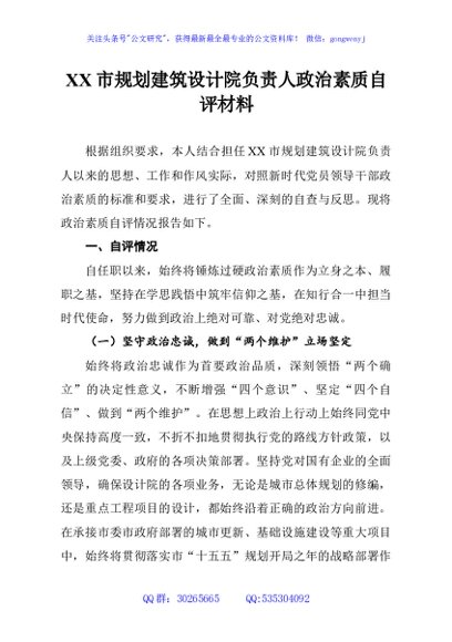 / XX市规划建筑设计院负责人政治素质自评材料