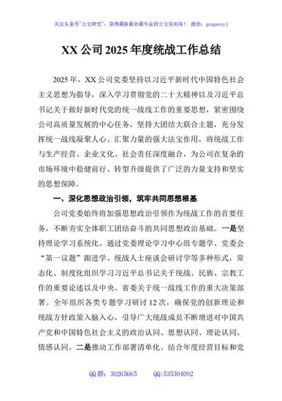 / XX公司2025年度统战工作总结