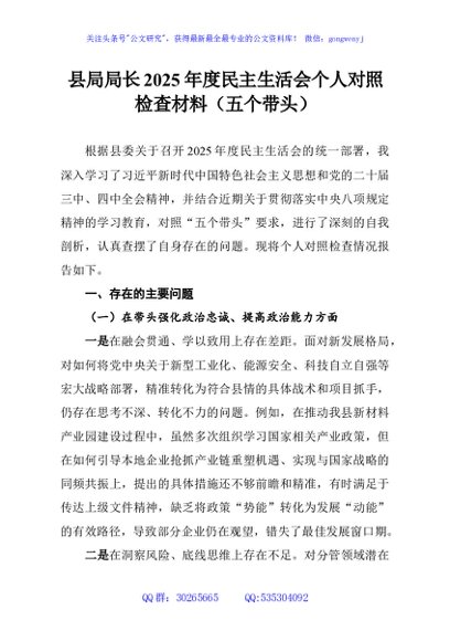 / 县局局长2025年度民主生活会个人对照检查材料(五个带头)