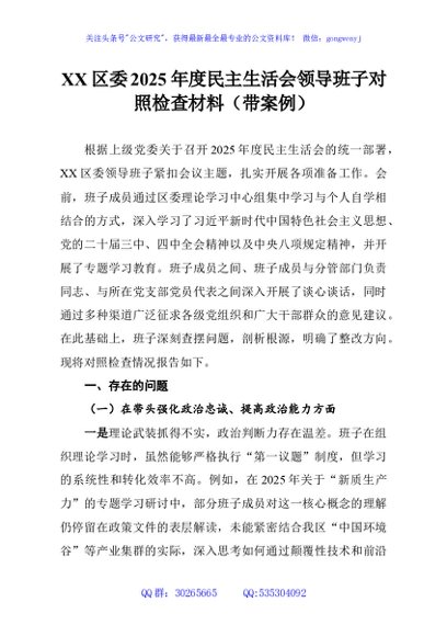 / XX区委2025年度民主生活会领导班子对照检查材料(带案例)