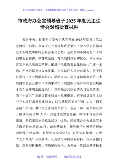 / 市政府办公室领导班子2025年度民主生活会对照检查材料