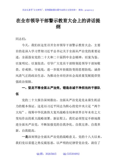/ 在全市领导干部警示教育大会上的讲话提纲