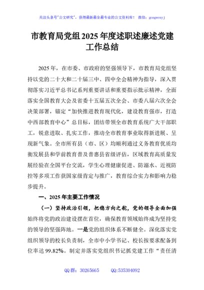 / 市教育局党组2025年度述职述廉述党建工作总结