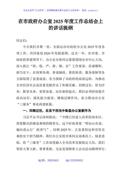 / 在市政府办公室2025年度工作总结会上的讲话提纲