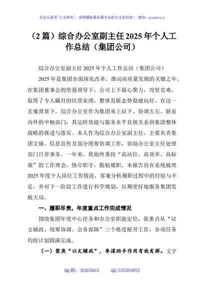(2篇)综合办公室副主任2025年个人工作总结(集团公司)