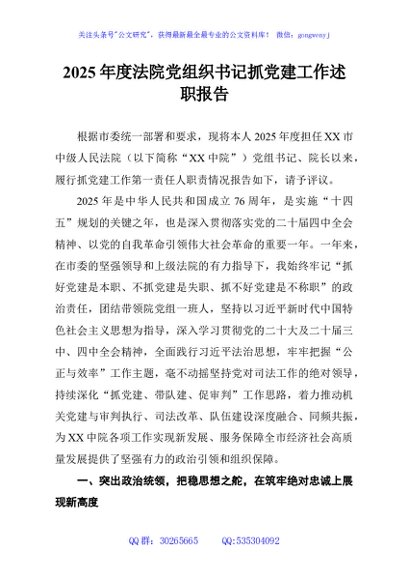 / 2025年度法院党组织书记抓党建工作述职报告