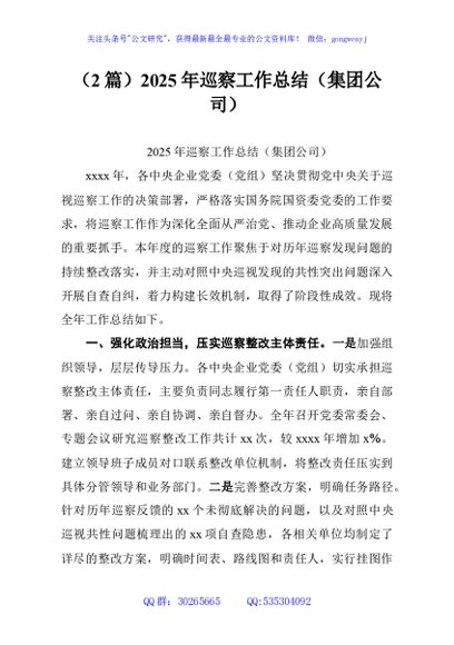 (2篇)2025年巡察工作总结(集团公司)