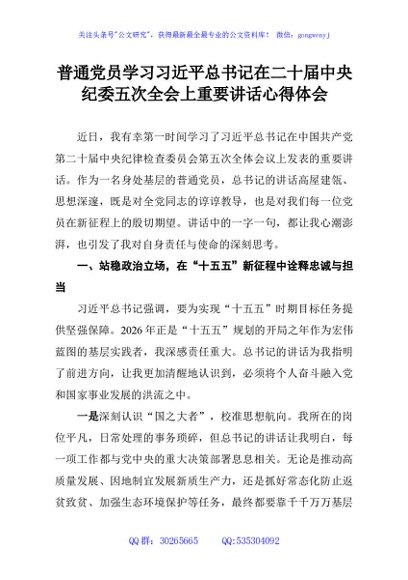 / 普通党员学习习近平总书记在二十届中央纪委五次全会上重要讲话心得体会