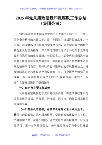 / 2025年党风廉政建设和反腐败工作总结(集团公司)