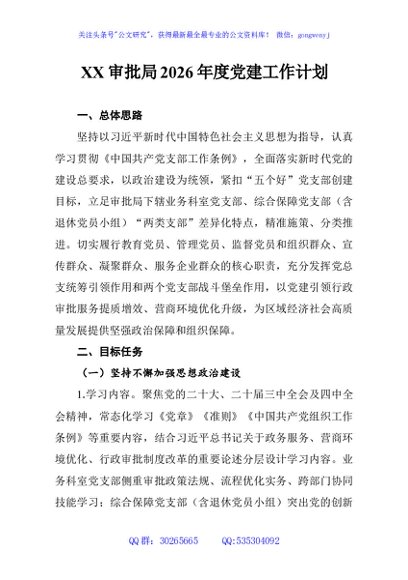 / XX审批局2026年度党建工作计划