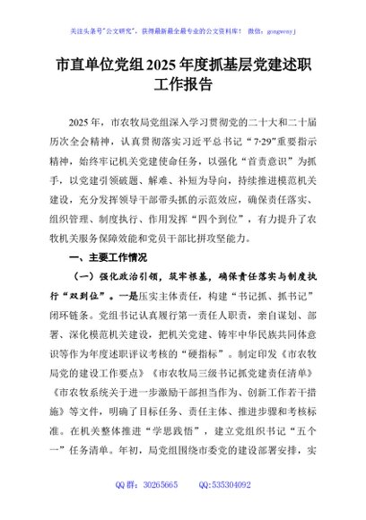 / 市直单位党组2025年度抓基层党建述职工作报告