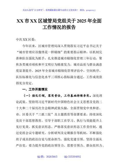 / XX市XX区城管局党组关于2025年全面工作情况的报告