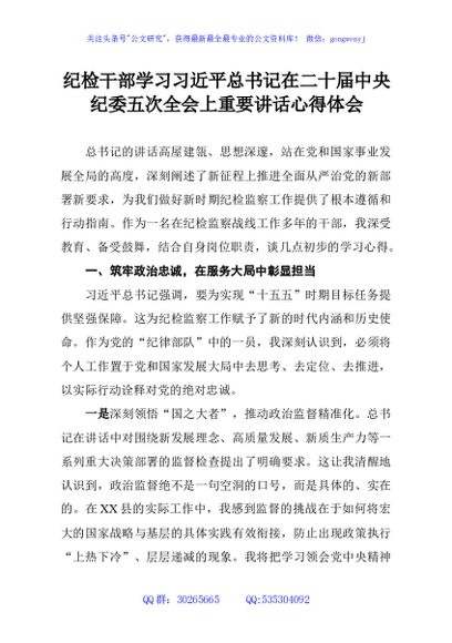 / 纪检干部学习习近平总书记在二十届中央纪委五次全会上重要讲话心得体会