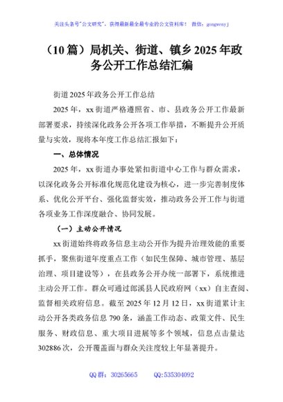 / (10篇)局机关、街道、镇乡2025年政务公开工作总结汇编