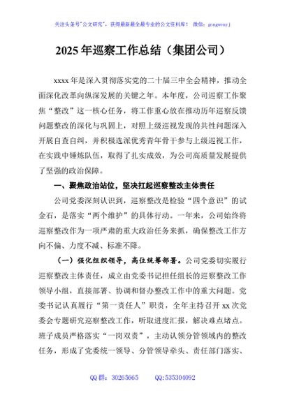 / 2025年巡察工作总结(集团公司)
