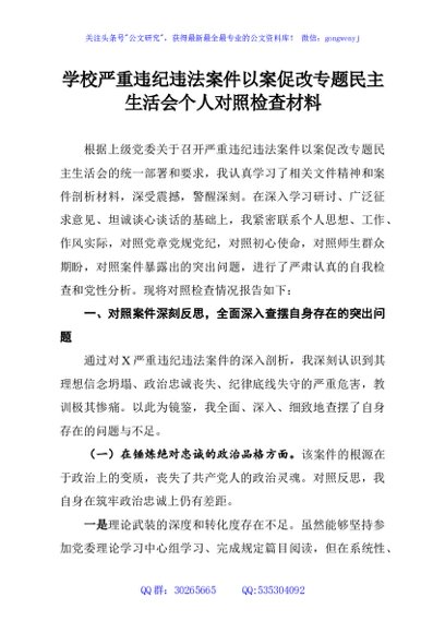 / 学校严重违纪违法案件以案促改专题民主生活会个人对照检查材料