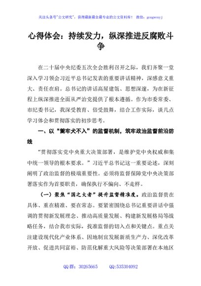 / 心得体会:持续发力,纵深推进反腐败斗争
