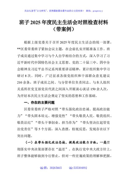 / 班子2025年度民主生活会对照检查材料(带案例)