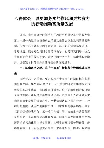 / 心得体会:以更加务实的作风和更加有力的行动推动高质量发展