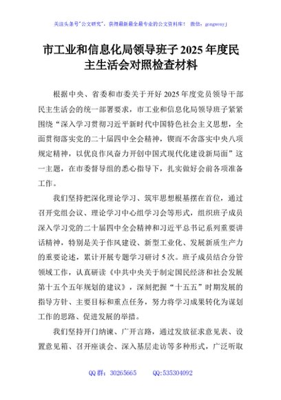 / 市工业和信息化局领导班子2025年度民主生活会对照检查材料