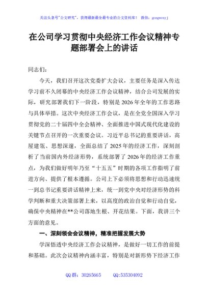 / 在公司学习贯彻中央经济工作会议精神专题部署会上的讲话