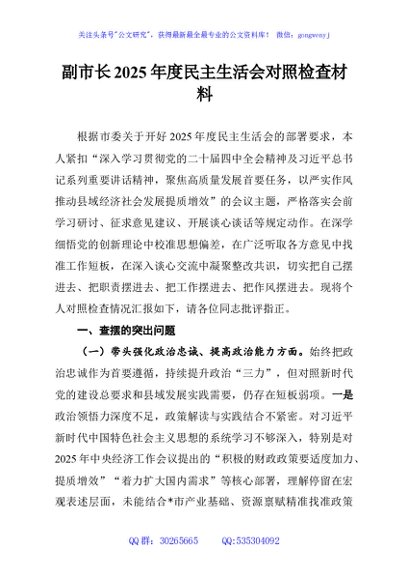 / 副市长2025年度民主生活会对照检查材料