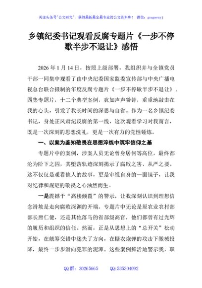 / 乡镇纪委书记观看反腐专题片《一步不停歇半步不退让》感悟