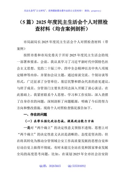/ (5篇)2025年度民主生活会个人对照检查材料(均含案例剖析)