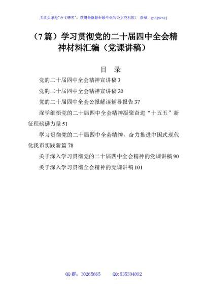 (7篇)学习贯彻党的二十届四中全会精神材料汇编(党课讲稿)