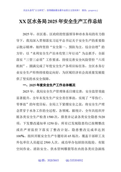 / XX区水务局2025年安全生产工作总结
