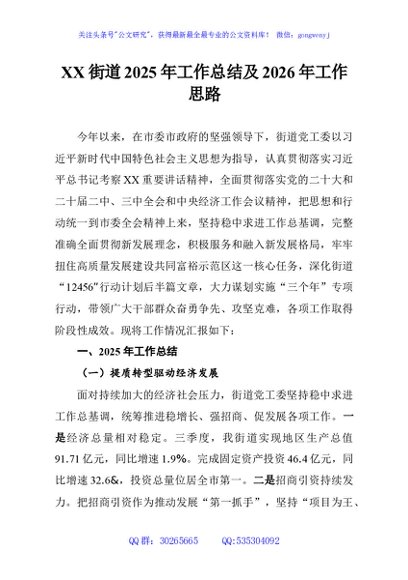 / XX街道2025年工作总结及2026年工作思路