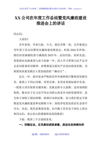 / XX公司在年度工作总结暨党风廉政建设推进会上的讲话