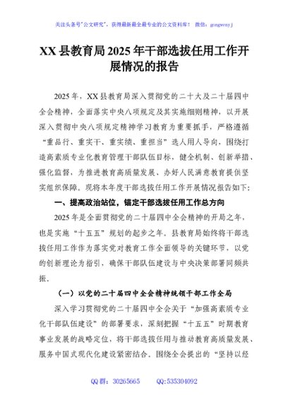 / XX县教育局2025年干部选拔任用工作开展情况的报告