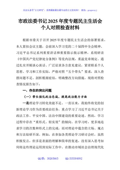 / 市政法委书记2025年度专题民主生活会个人对照检查材料