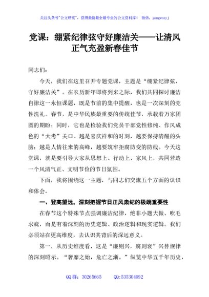 / 党课:绷紧纪律弦守好廉洁关——让清风正气充盈新春佳节