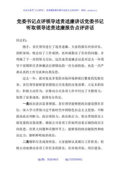 / 党委书记点评领导述责述廉讲话党委书记听取领导述责述廉报告点评讲话