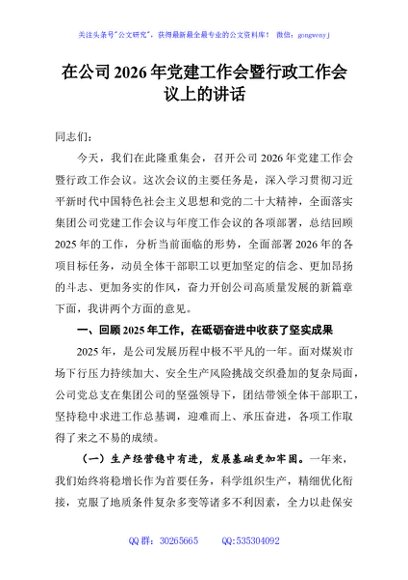 / 在公司2026年党建工作会暨行政工作会议上的讲话